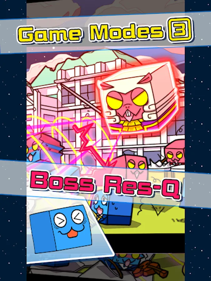 There are four game modes in this puzzle game. Try to clear the stage before time is up by lining up Tetra-Qs into rectangles to gather points and stop the enemy characters.