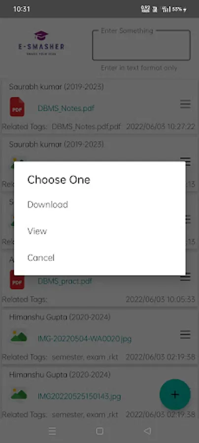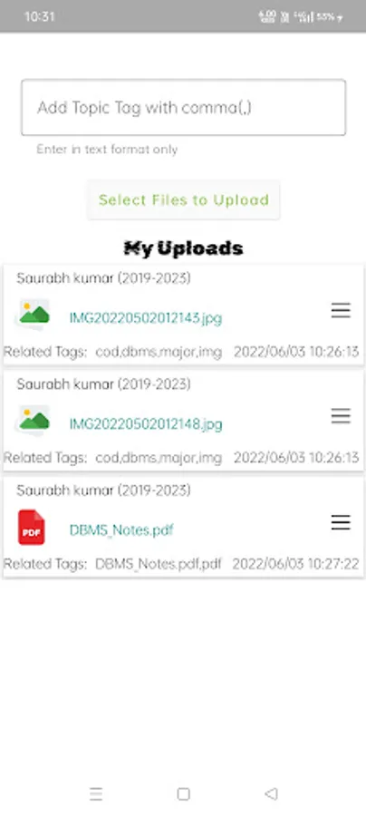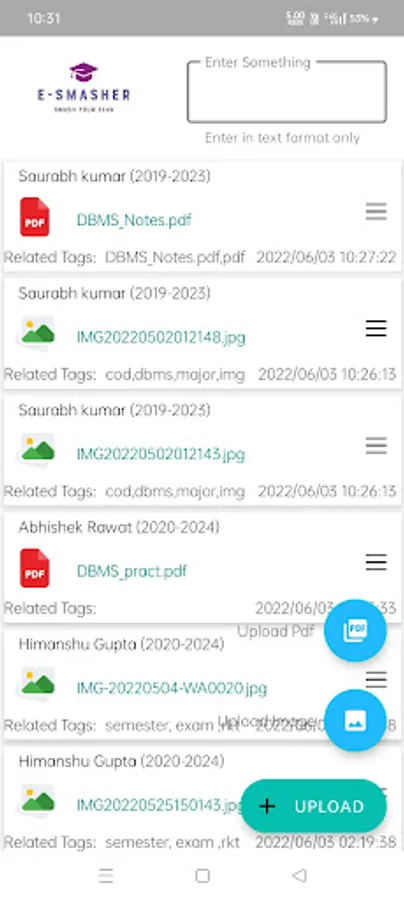 This App is for College students for Their Semester Exams, Here Students will share different resources and help each other. Students can upload multiple images and add tags related to the images they upload so that other users can find them easily.Users can upload pdf files. Students can view or download the image or pdf files as per requirement. This app will help student to avoid distraction and stay focused on their exams