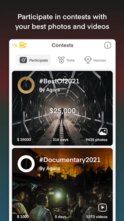 Make money with your photos, videos, music, art and creativity on Agora: The Worldwide Awards. Win prizes, recognition and opportunities with Agora and your talent.