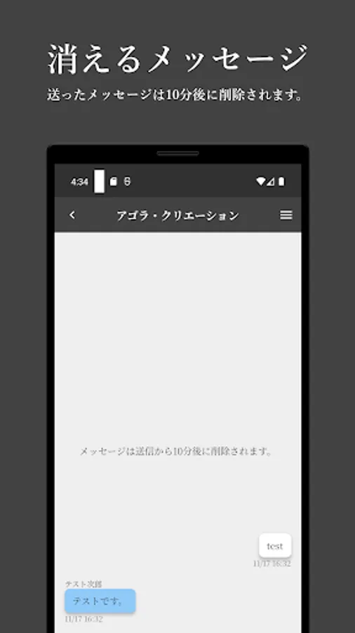 This app, which was created based on that, not only allows you to send messages normally, but also makes the messages disappear 10 minutes after they are sent.