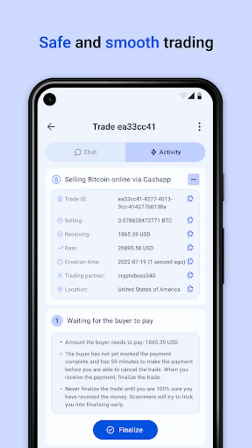 Just like LocalBitcoins, we support any payment method, any currency, anywhere. We do not remove payment methods, and, unlike LocalBitcoins, we fully support face-to-face cash trades. All of our trades are protected by an arbitration bond. Thanks to the fact that we require funds to be held in arbitration bond before a trade can start, we ensure a smooth and safe experience for the buyer, which is essential for the popularity of the platform and repeat customers for the sellers.