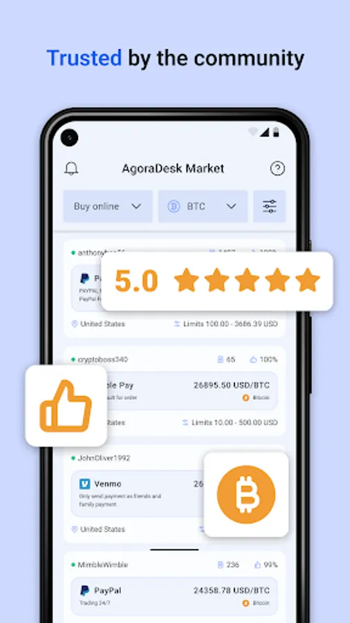 Wondering how to invest in Bitcoin? On AgoraDesk, purchasing bitcoins has never been easier - instantly buy BTC from a person using your favorite online payment method: PayPal, credit/debit card or bank transfer, gift cards, Venmo or any other. If you want to buy bitcoins near you with cash, you can find someone willing to sell bitcoins locally - the trading platform supports buying and selling BTC with cash. You can even buy bitcoins using cash by mail.