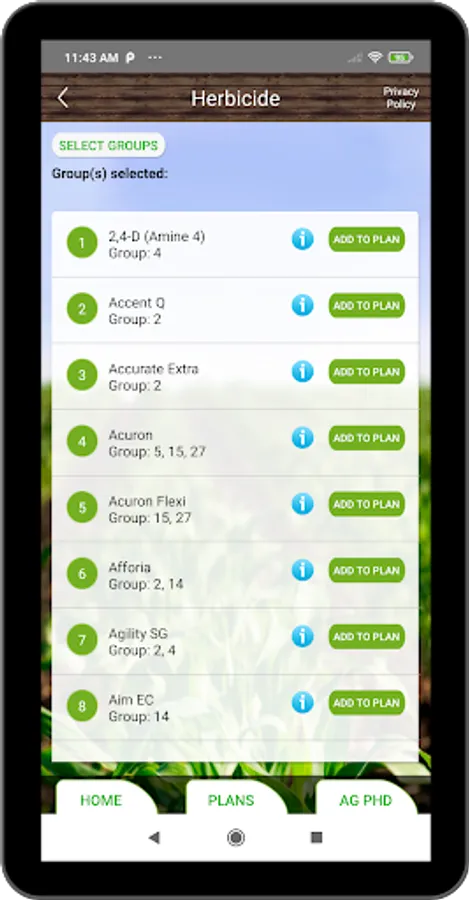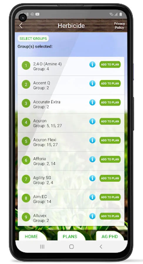 The Ag PhD Modes of Action app helps you to diversify your pest control program. You can browse herbicides, insecticides, and fungicides and view active ingredients, labels, and safety documentation. You can also easily reference respective Group numbers in order to plan your herbicide applications and build a pest control program that is effective throughout the year while minimizing the risks of resistance.