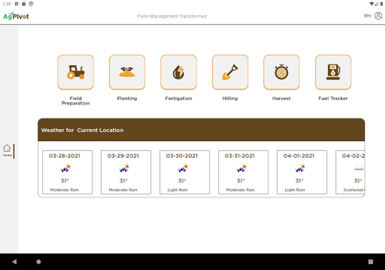 AgPivot farm management software helps you plan, monitor and analyze all your activities on the farm: Planning, Hauling, Cutting, Planting, Spraying, Fertigation, Yield Checks, Harvesting, Storage and other activities with a few clicks, while tightly integrating with the other in-house systems. AgPivot also helps with your Farm Economics in keeping track of the sales, costs, and revenues.