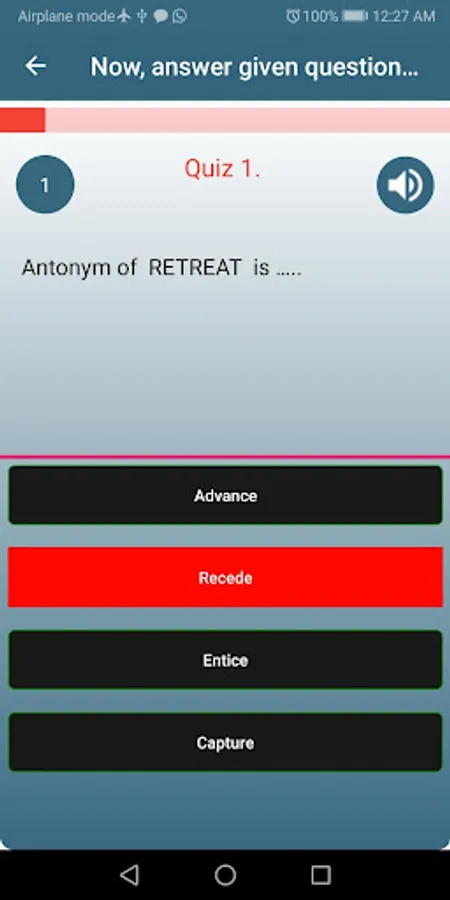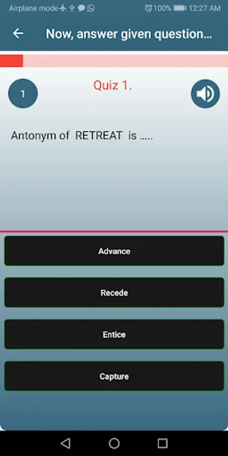 Quiz 23. ANTONYMS( PURGE, TARDY, BABEL, GRADUALLY, CONTENTED, ELEVATION, EXPLOSION, SURPLUS, ARCHAIC, EXTREME)