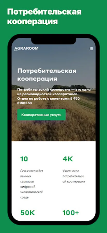 Agraroom provides a full range of services and services - a marketplace, targeted consumer deposits, an animal registry, consumer cooperation, a news portal, a poster of events, courses and seminars, a club, a help center, a partner network, legal support and a whole range of services for organizing and accounting for agricultural business.