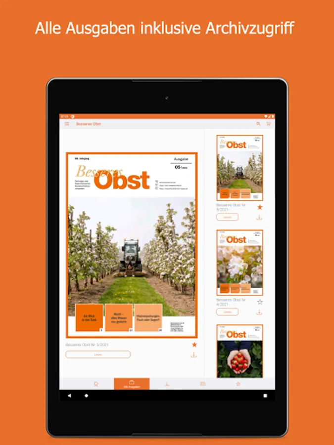 The trade magazine "Better Fruit" provides fruit growers with targeted information on production, technology, crop protection, market developments and the storage and marketing of table fruit. There are also tips for fruit processing and new fruit types and their assessment. The magazine is published eleven times a year.