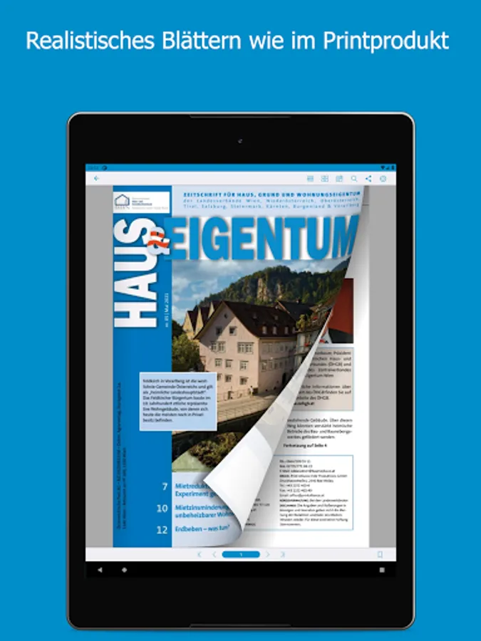 House & Property is the association magazine of the Austrian House Land Owners Association (ÖHGB) and the regional associations of Vienna, Lower Austria, Upper Austria, Styria, Tyrol, Salzburg, Carinthia, Burgenland and Vorarlberg. It is published eleven times a year.
