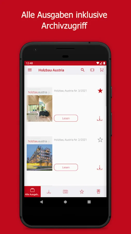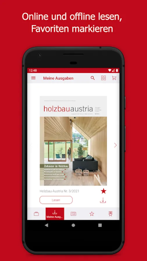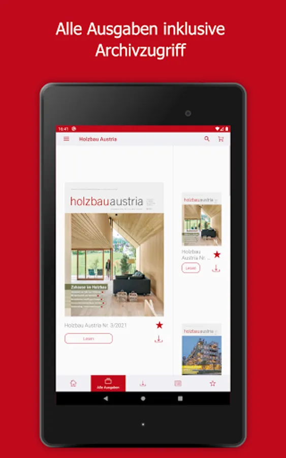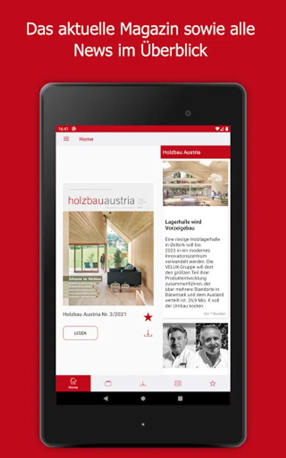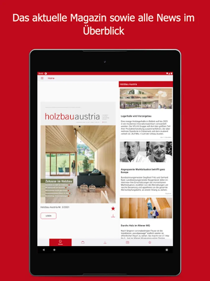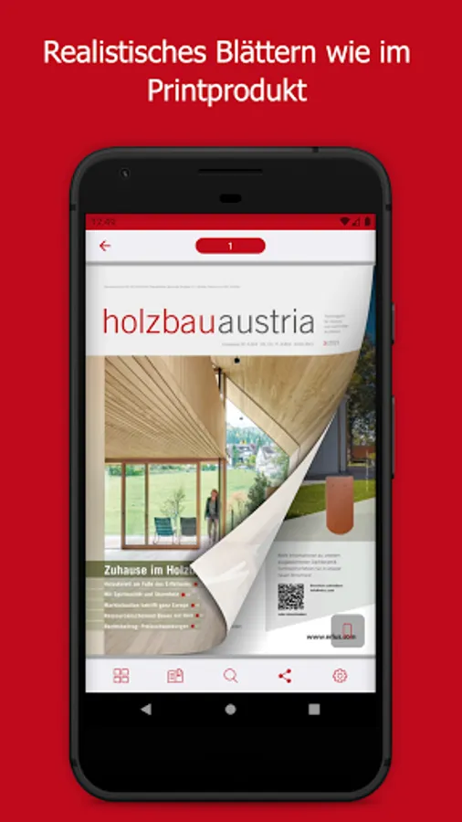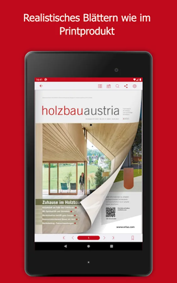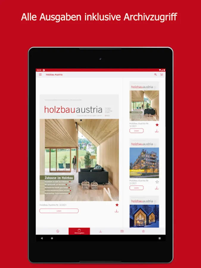 The Holzbau austria app enables electronic purchase of the e-paper, which is published two days before the print magazine is published. Readers have the option to buy single issues for € 4.49 or to subscribe for annual subscriptions (€ 35.99 / year). A test edition is available for free download. All downloaded issues can also be read offline for an unlimited period of time. The download has to be paid for once and can then be read on several devices connected to the same account. Payment is made via GooglePlay. Subscriptions renew automatically and must be canceled at least 24 hours before expiry (the account will be charged again within 24 hours; you can deactivate the automatic renewal of your subscription in the app settings). If you have any questions about this offer, please contact magazin@holzbauaustria.at.