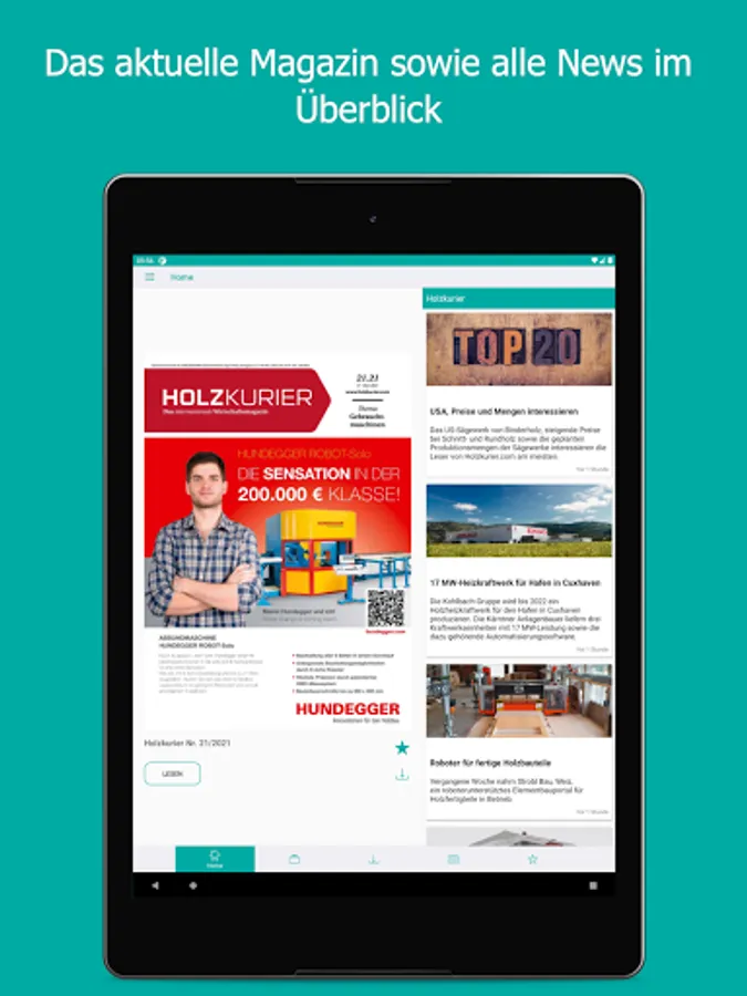As a current weekly medium, the Holzkurier specializes in market and technology reporting for the German-speaking sawing and timber industry. The Holzkurier provides readers with B2B market information. The editorial team researches 14 own price pictures each month (logs, sawn timber, glued timber, etc.). Readers will only find production overviews ("top companies") of sawmills and planers, glue-wood companies, etc. in the Holzkurier. The Holzkurier also provides information on all relevant import and export statistics. Technical reports on the latest installations round off the reporting. Information is clearly processed in tables and information graphics.