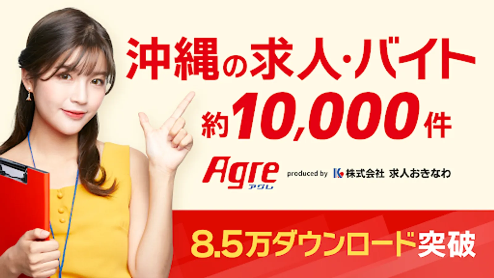 The official app of the recruitment site Agre, which boasts an overwhelming number of listings in Okinawa.