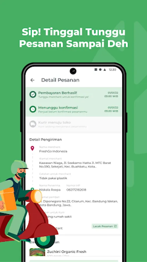 In addition, there is also an order delivery service so that the ordered goods will be picked up by the courier to the merchant, then sent in their entirety and kept fresh until they are in the hands of the buyer.