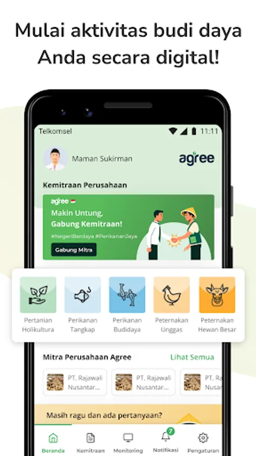 Agree is an application that functions to monitor the cultivation process in the agriculture, fisheries, livestock and integrated farming sectors.