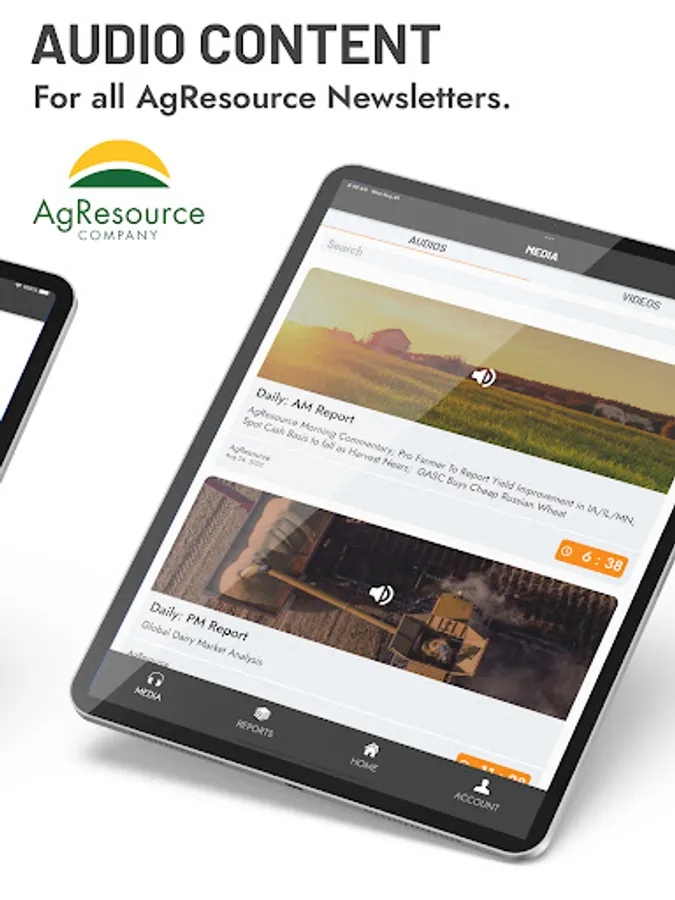 • Access the audio version of ALL AgResource subscriptions.