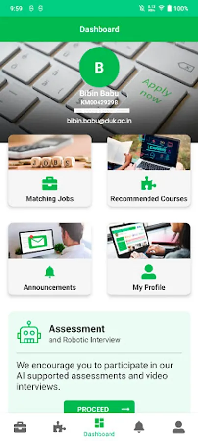 Once registration is completed in DWMS, based on their profile, job aspirants can view the matching jobs in their dashboard. The system has a feature to take self-assessment and help job seekers discover their core skills, assess their career options, and prepare better for the interview. Job seekers can also build professional resumes highlighting their strengths and achievements. A video profiling with a robotic discussion can also be done by the job seekers, which will help stand out in prospective employers' eyes.