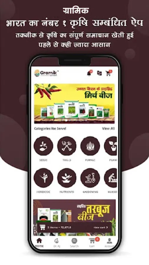 ग्रामिक, एग्रीकल्चर एक्सपर्ट द्वारा बनाया गया मोबाइल एप्लीकेशन है, इसमें हमारे किसान विविध प्रकार की सुविधा जैसे की घर बैठे बीज, दवाई, खाद, उर्वरक, इत्यादि अपने पते मंगा सकते हैं. और विभिन्न प्रकार की खेती से जुड़े सुचना एवं जानकरी इस ऐप के माध्यम से हमारे एक्सपर्ट से डायरेक्ट सलाह ले सकते हैं.