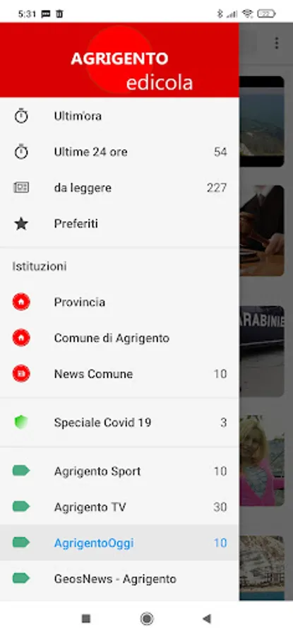 With 'Agrigento edicola' you can read the news of online newspapers and magazines of the Municipality of Agrigento and surrounding area (province)