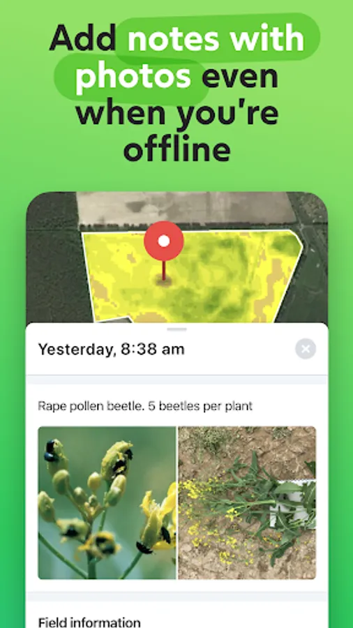 View NDVI for the last six months, make notes, and edit field information even when you're offline.