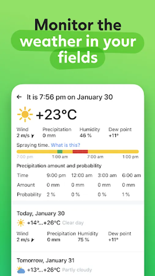Agrilever DigiFarm provides a 5-day weather forecast, real-time precipitation map, and our spray time recommendations.