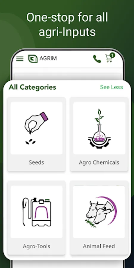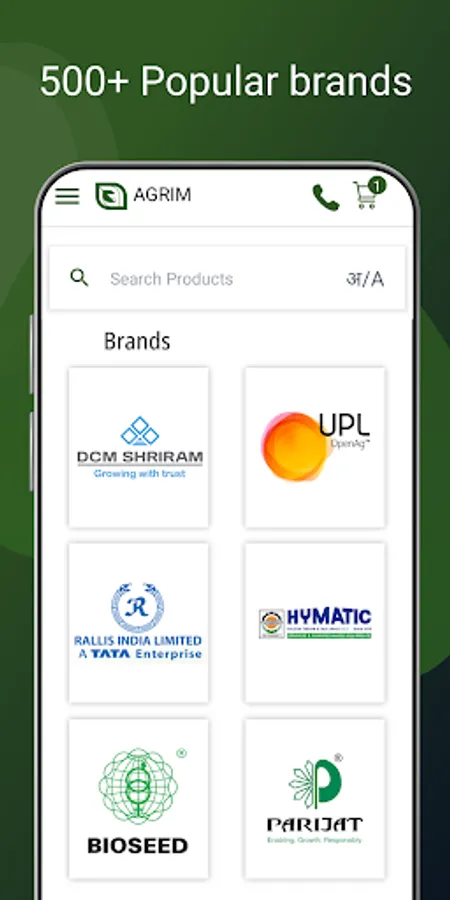 Download the app now and start buying from a large selection of Field Crop seeds, Vegetable Seeds , Agriculture tools, Spray Pumps, Pesticides, Herbicides, Fungicides, Bio-fertilizers ), Cattle Feed (animal feed), Fish Feed and much more; From brands like: UPL, Godrej Agrovet, Corteva, Bioseed and 500+ other MNC, National and regional brands.