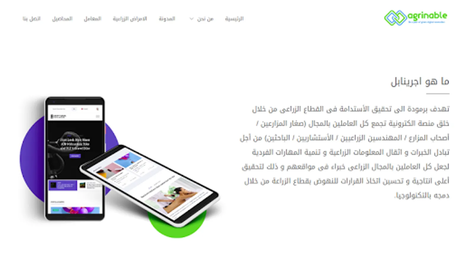 Agrinable aims to achieve sustainability in the agricultural sector by creating an electronic platform that brings together all the field workers (small farmers / owners of farms / agricultural engineers / consultants / researchers) in order to exchange experiences and weight of agricultural information and develop individual skills to make all agricultural workers experts in To achieve higher productivity and better decision-making to promote the agricultural sector through its integration with technology.