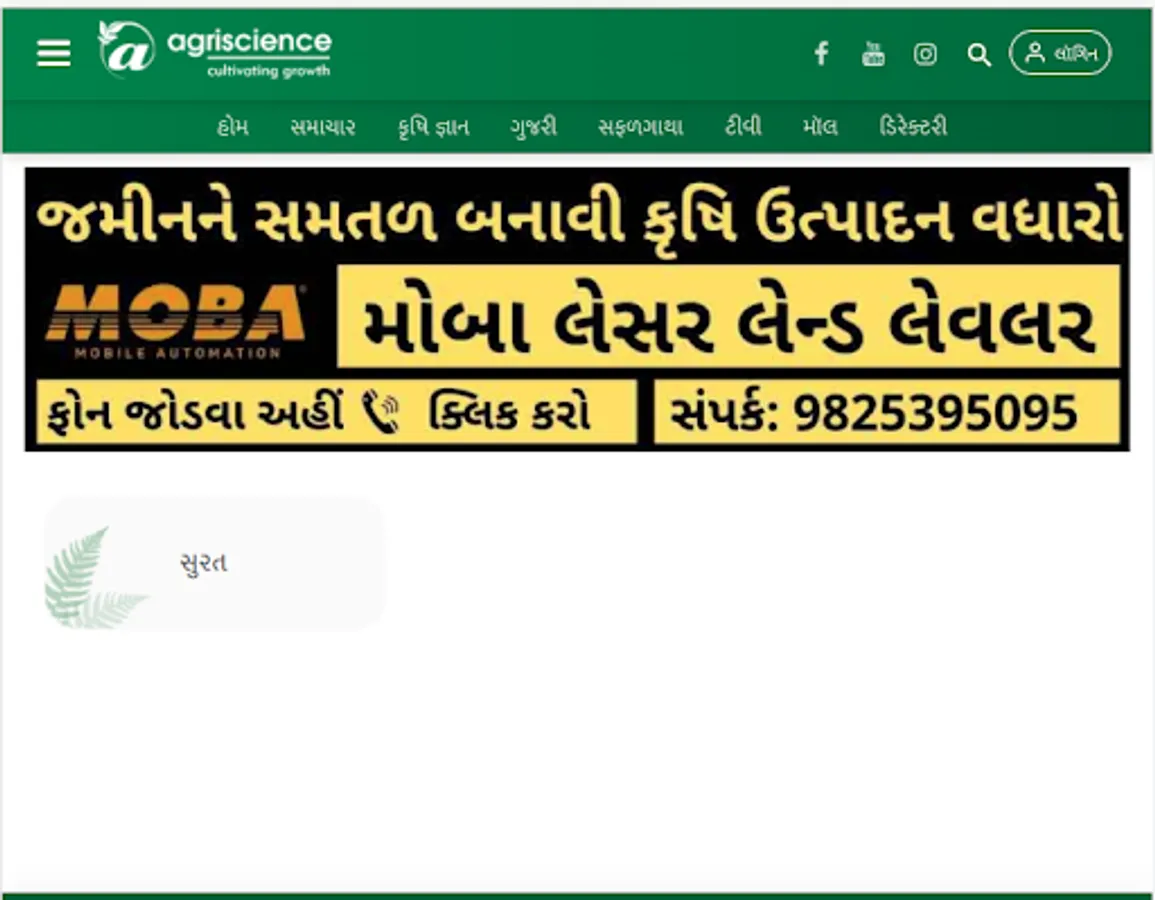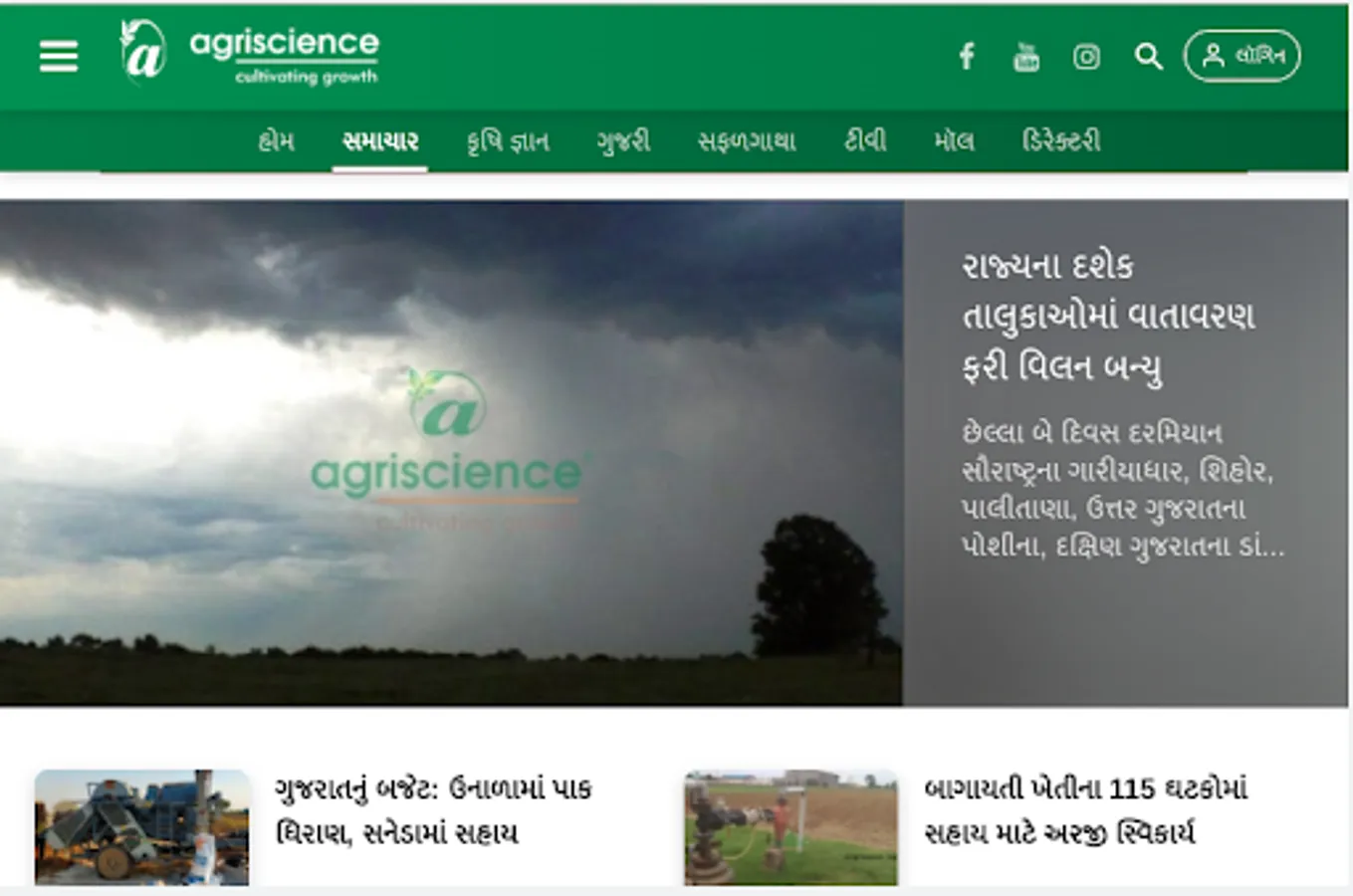 "Agriscience Krishi" mobile app provides farming-related information in simple Gujarati language. "Agriscience Krishi” app has been developed and is managed by Culgrow Agriscience Private Limited.