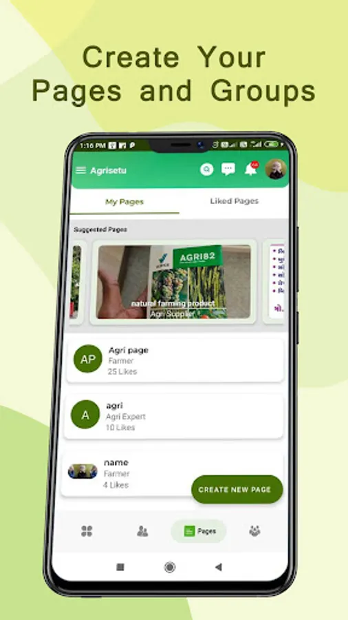 3. Create Your page and profile - Farmer Can create their profile and page and can post their views and images on the pages.anothers farmers can acknowledge their feedback by using this feature of the app by marking “like, comment and share”.