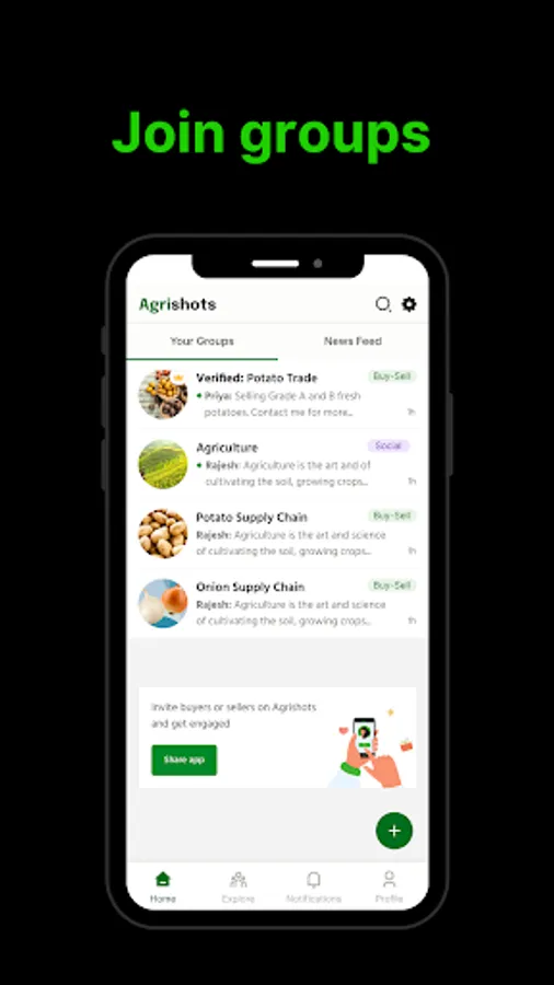 Agrishots a B2B marketplace for agriculture commodities in India for buyers and sellers to connect and trade with transparency. Our platform has commodity based groups where buyers/sellers can post their supply/demand with details such as commodity, photo, quality, quantity, price, location, payment acceptance criteria and description. Buyers/sellers can rate & give review to each other to build credibility. We also have verified groups which is only for verified users. We provide end-to-end transaction support including logistics with order tracking & payments.