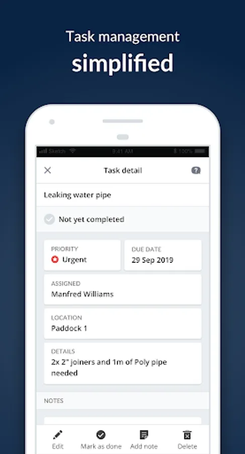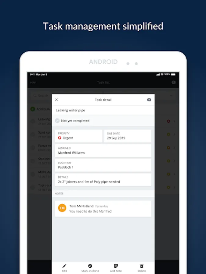 * Create, assigns and complete tasks on your farm