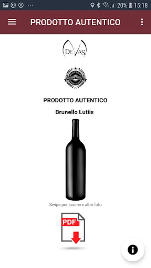 To perform a reading, just bring your smartphone near the TAG NFC, the app will automatically be launched which will verify the authenticity of the TAG by viewing the product sheet.