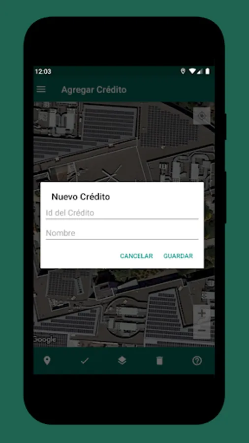 Application that allows to obtain the geographical coordinates using the GPS of the mobile device and assign them to a credit granted by the FND.