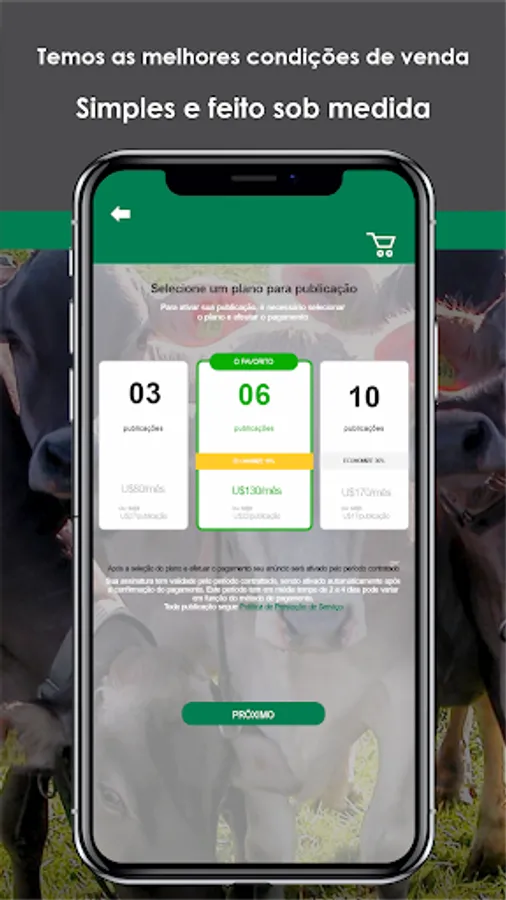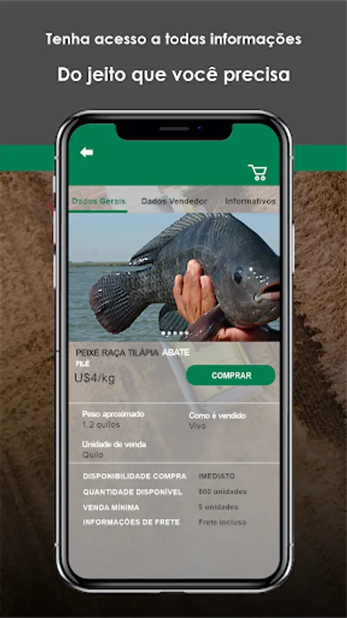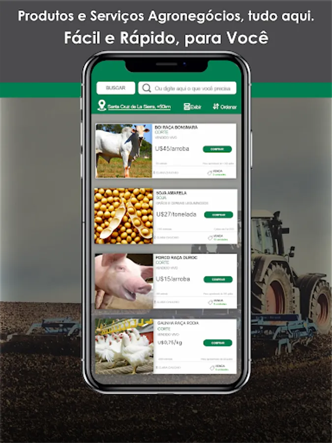 If you are a big trader or small trader, we think of you. Start selling PRODUCTS agriculture, livestock, swine, poultry, horses, fish farming, beekeeping, agricultural inputs, veterinary products, resellers and SERVICES as service providers. Define value, minimum quantity, if it is already available for sale, how the freight works; you can enter all the data facilitating your sale.