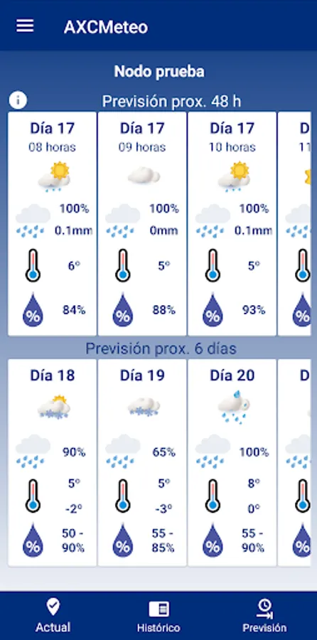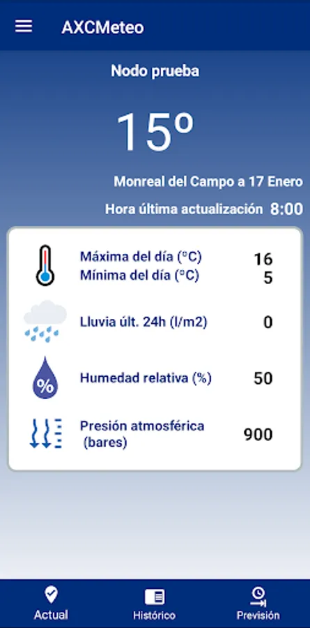 AXCMeteo is an application that offers field professionals information about the weather on their farm. In order to control the temperature, humidity and rain, thus knowing weather conditions without having to travel.