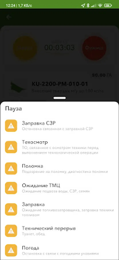Mobile application for monitoring the execution of tasks by a machine operator.