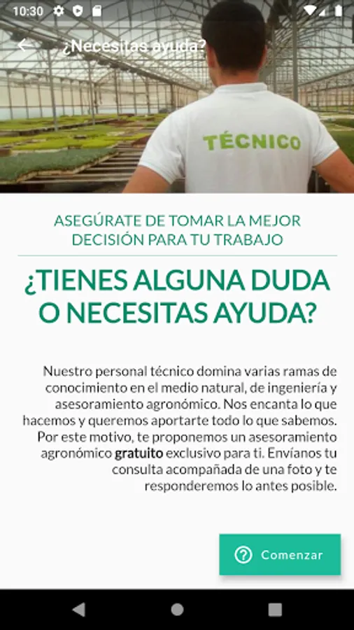 Follow all the news from the agronomic sector and get quality agronomic advice using your device. You can pre-enroll in any of the many courses we offer and ask questions related to agronomic advice by taking a photo and filling in a small questionnaire from the application.