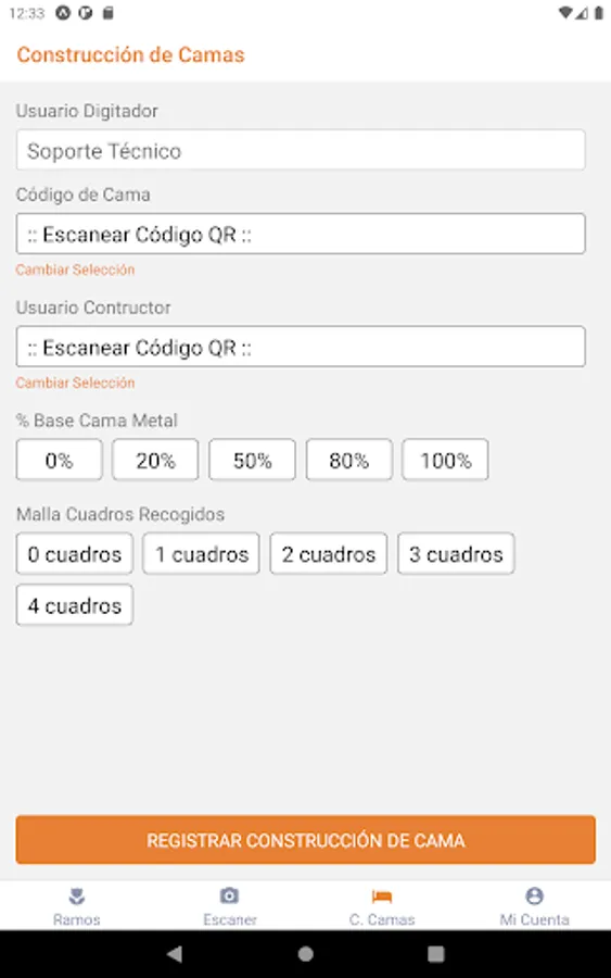 This app is exclusive for the Agromonte work team. With it, the team will be able to register the branches collected in the crop. Scan the QR code of a bouquet to know its origin and related data. Report when a construction or maintenance of a crop bed is finished. Finally, you can check your account details in the "My Account" menu.