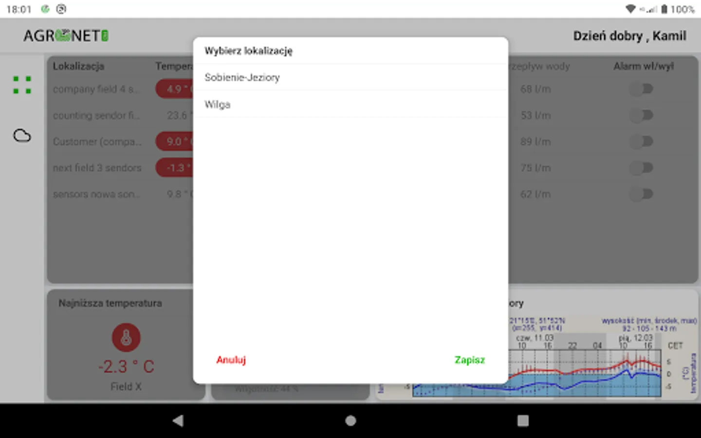 Agronet PRO is an application to support the temperature sensor system named Agronet PRO. The app has been developed for fruit farmers, to help them prevent frost damage to their trees. The application lets you monitor sensor data, as well as the location of the sensor. On the “map view” you can see all the sensors and their location, tapping on a sensor and you can see the current temperature. In addition to real time sensor data the system notifies you when your field is in danger of frost. The application helps you to add your sensors to the system and place them on your field. It is as easy as scanning the QR code on the sensor, naming it and adding it to a field.