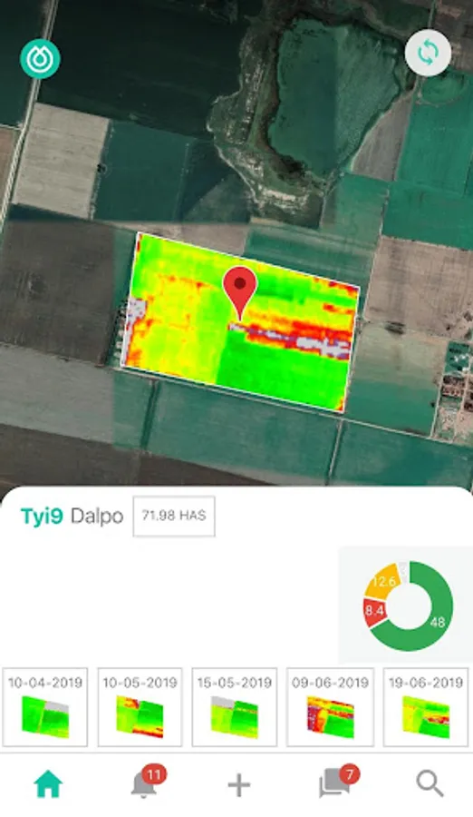 Agrosty defines the vegetation index (NDVI) within a specific area: you will see how the field is divided into sections of different colors depending on the growth of the crop.