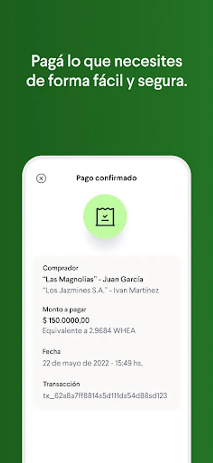 4- You have your tokens available in your wallet to use as you need in our exchange network of more than 150 agricultural businesses, request loans or pay with your Visa card!