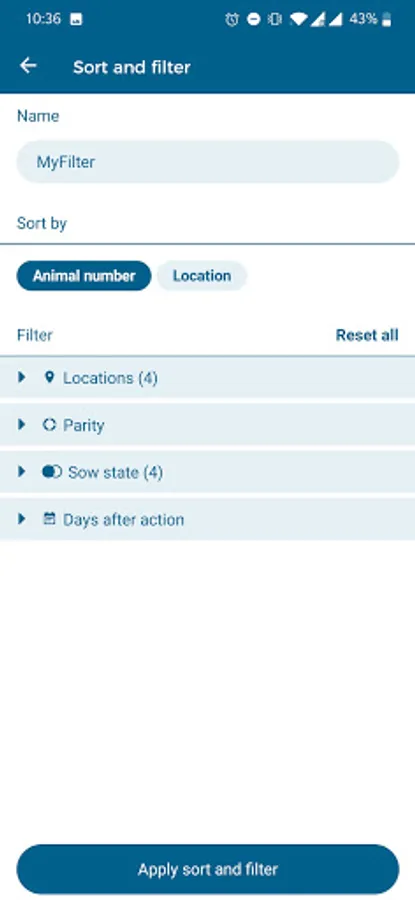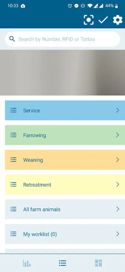 Action lists for services, farrowings and weanings are also availabe. It is possible to create 'your own' worklist and make use of a list with all animals, where you have several filters and sortings available.