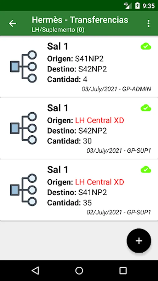2) Record of Transfer of Sales between deposits