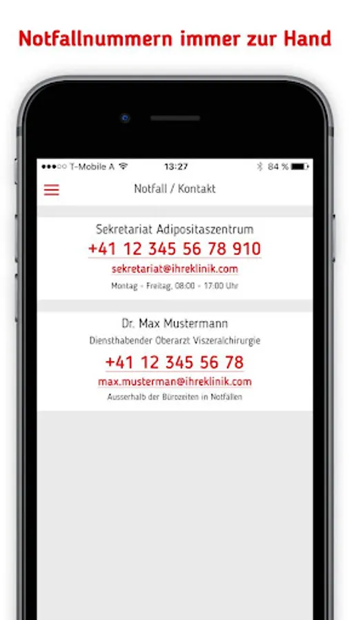 In addition, you have the contact details of the clinic where you underwent surgery, always there. In an emergency, you can call so directly from the app, or send any other questions, an e-mail to your doctor.