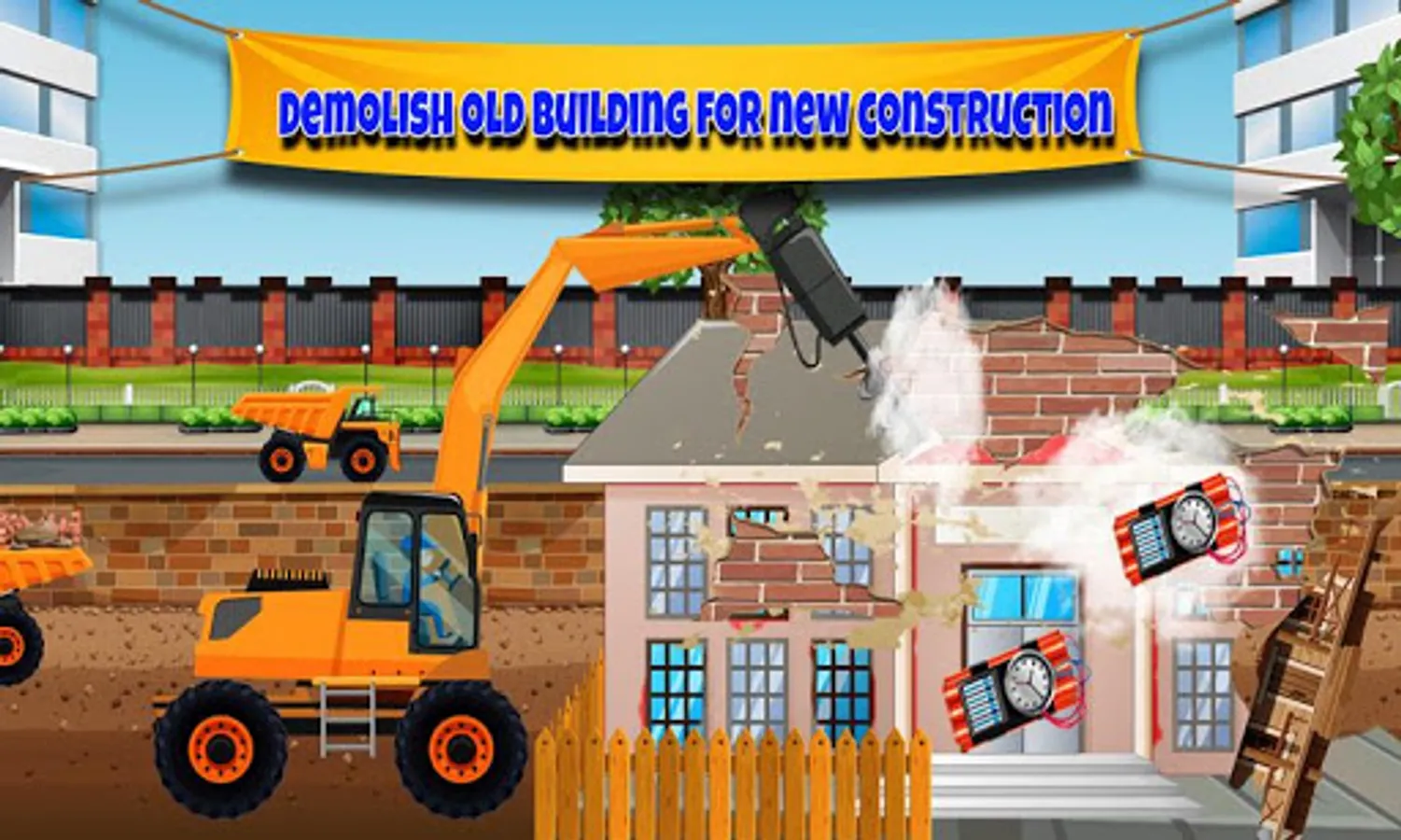 Crazy builder! Crafting a police house is not a big deal as you already have constructed many different mega projects like city road construction, bridge builder and railway. Be the best architect engineer in this builder games for boys and girls. To build the police station first you need to demolish the old rusty house using driller, wrecking ball crane and dynamites. Use driller to make the walls weak and then place dynamites in base to destroy it. Crazy house maker! now operate the wrecking ball crane and demolish the home structure completely. Steer multiple big machines for cleaning and washing house debris. Cleanup and wash the mess from the site for starting the constructor work.