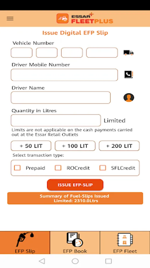 The Essar Fleet Plus (EFP) App offers following benefits