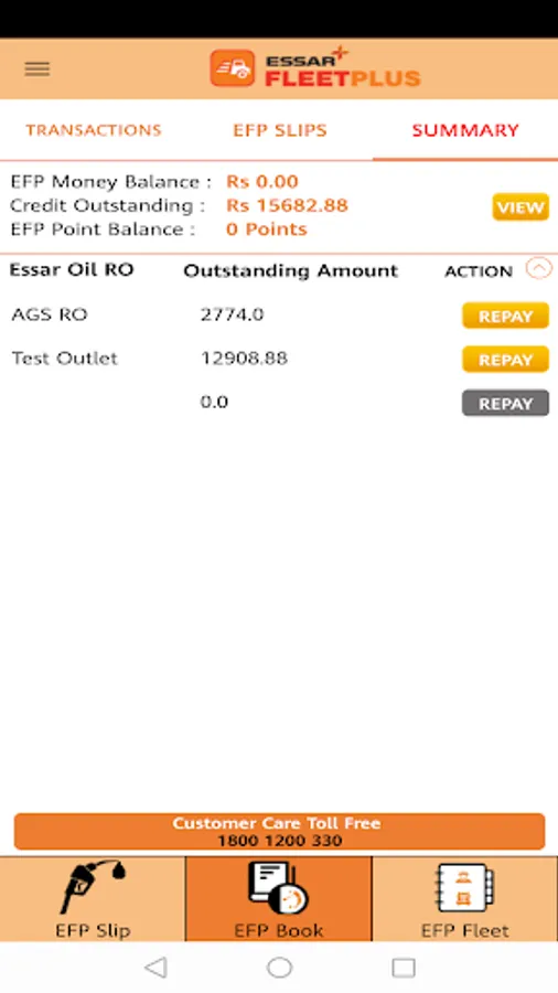 · EFP Book to review the total fuel purchase transactions and to check EFP Money balance and EFP Point balance.