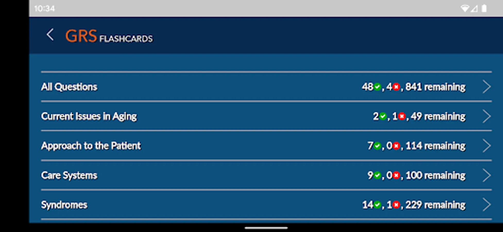 Available exclusively to those who purchase the AGS GRS11 Digital Complete or GRS11 Digital Complete Plus Print, the GRS11 Flashcard app offers over 850 digital flashcards that can be used as a study tool to help prepare for the Geriatric Board Exam. With the GRS11 Flashcard App you can: