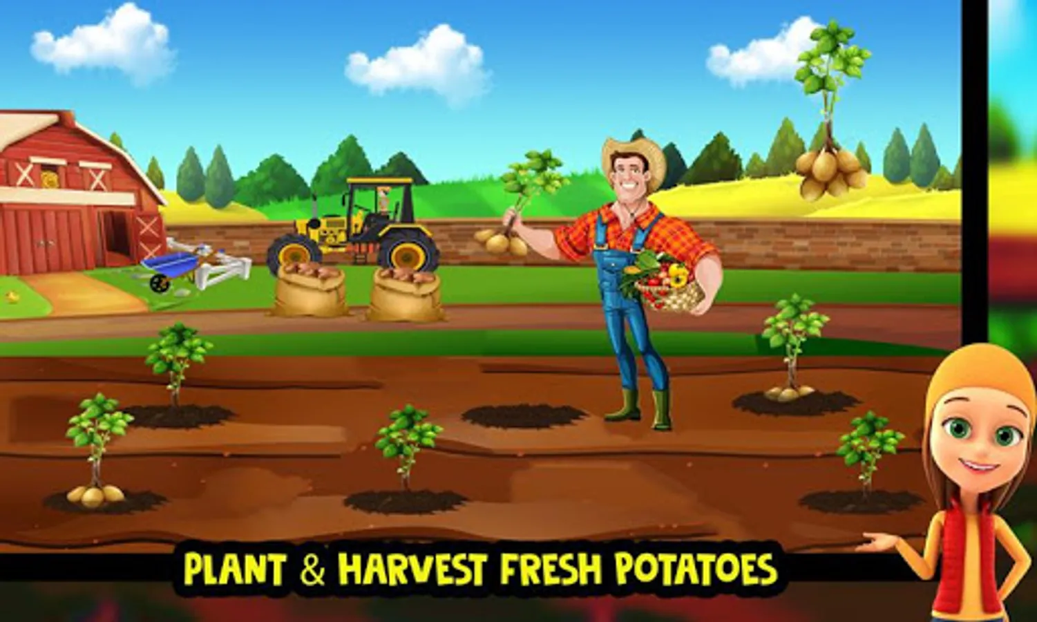 Dig up the farm land in your farm house backyard lawn garden and seed the potato. Water the veggies and take care of the farm in this food management sim. Wait for crispy potatoes grow up and then harvest the crops. Pluck the crispy potato chips and fill them in the boxes for delivery truck.
