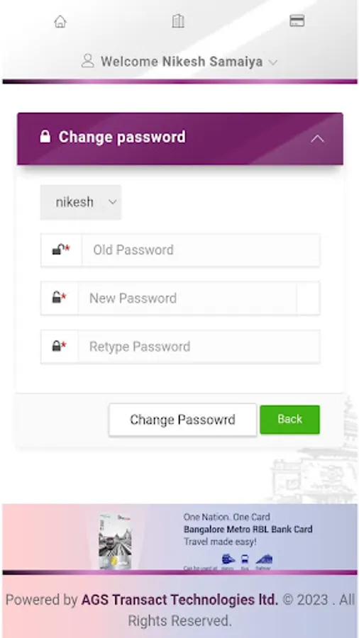 Namma Metro Rupay National Common Mobility Card Application with below features: