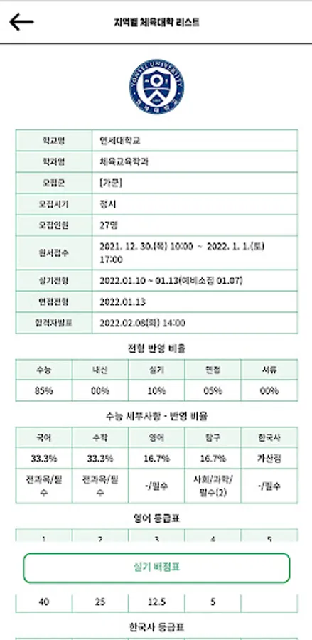 You can see at a glance the number of applicants, the admission schedule, the admission method, and the actual score distribution on the desired school's department page.