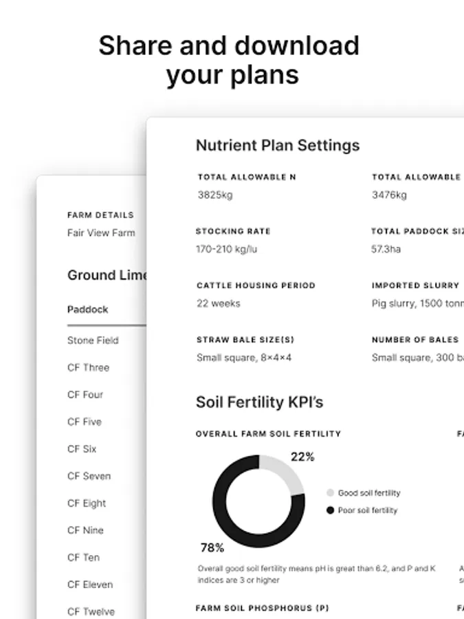 GrassMax allows farmers to store and view soil analysis for each paddock on the farm. Fertiliser shopping lists, soil fertility status, lime programmes and slurry application programmes can be easily generated and sent to fertiliser suppliers, contractors and staff for quick and easy completion of everyday tasks. GrassMax is the essential tool for all grass farmers.